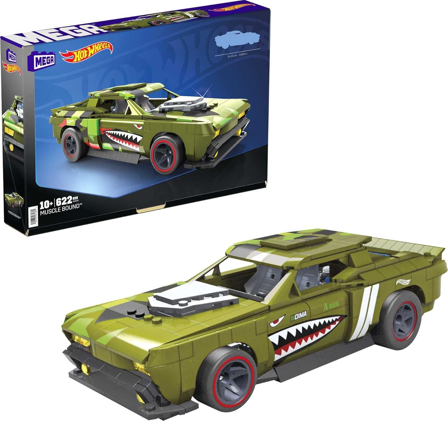 Set de constructor adulto de vehículos de carrera Collector Muscle Bound de Hot Wheels de 622 piezas a gran escala 1:18 con elementos de diseño auténticos, decoración y gráficos icónicos​.
