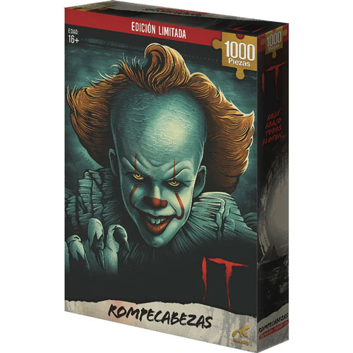 Este Rompecabezas Novelty te ofrece una exclusiva imagen de Pennywise de la película It. Está conformado por 1000 piezas te ayudará a que tus pequeños desarrollen su creatividad, relajación y concentración. Además, viene en una caja para que lo puedas transportar fácilmente.